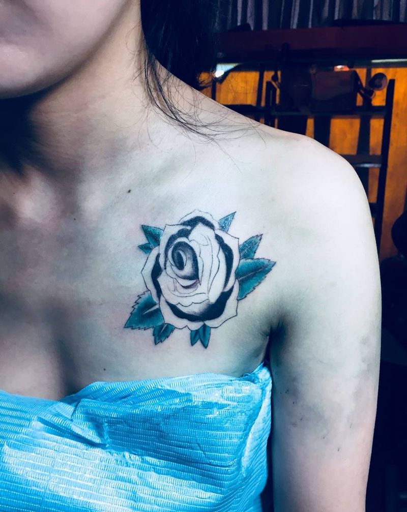 • 女性大花胸纹身_43张霸气漂亮的女性大花胸纹身图案作品