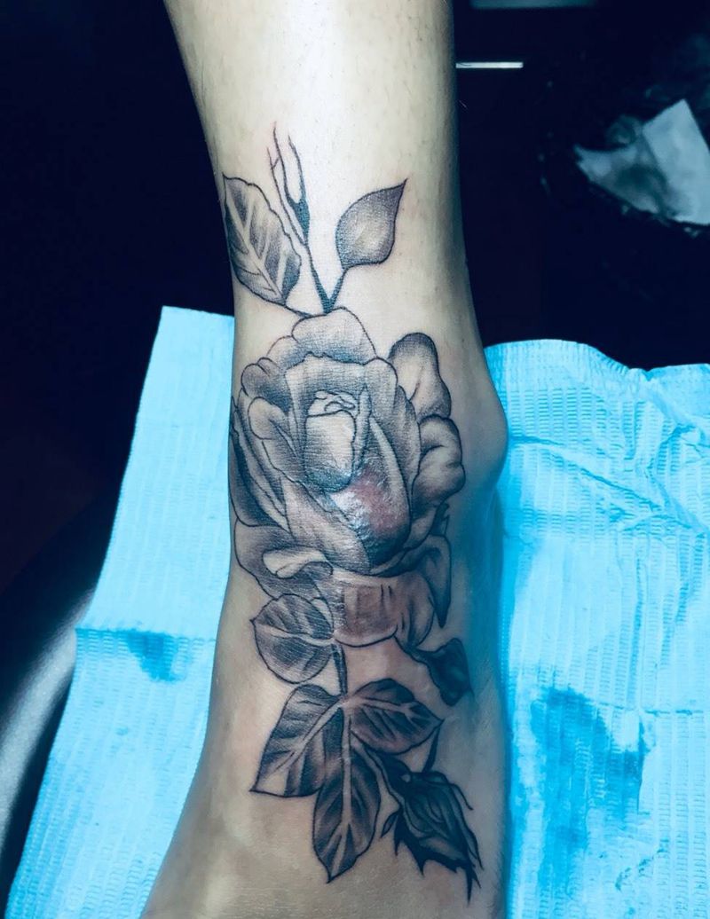 素花遮盖疤痕纹身图片_脚部纹身图案