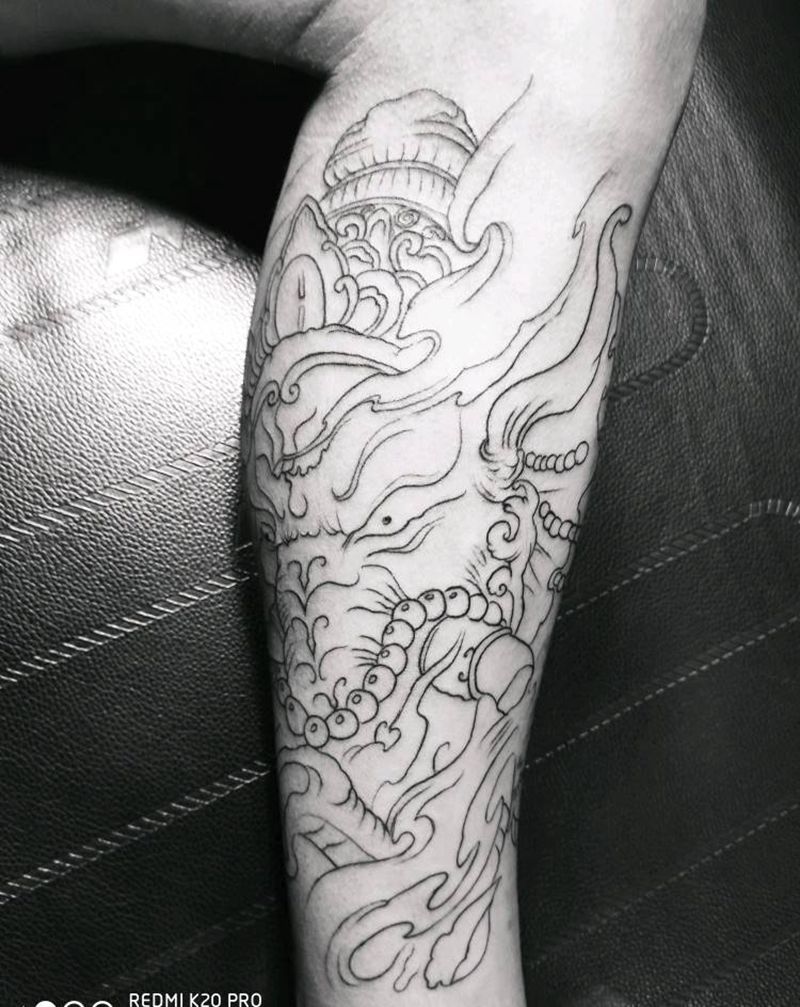 • T网红王老大花腿龙纹身图片_腿部新传统纹身图案