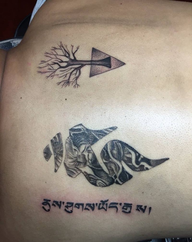 梵文 藏文 彩色艺伎纹身图片