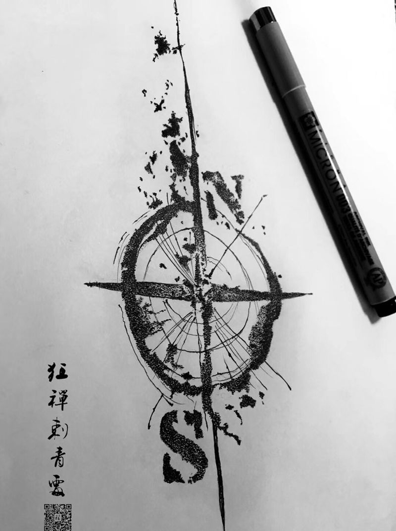 当前位置: 首页 >四川省宜宾市纹身店-狂禪刺青處纹身图案>设计点刺指南针纹身图片