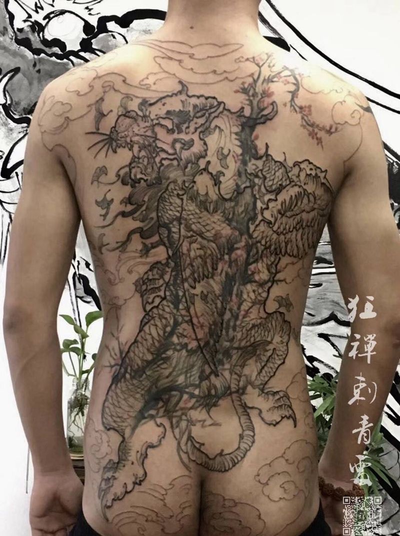 当前位置: 首页 >四川省宜宾市纹身店-狂禪刺青處纹身图案>满背遮盖貔貅未完成纹身图片