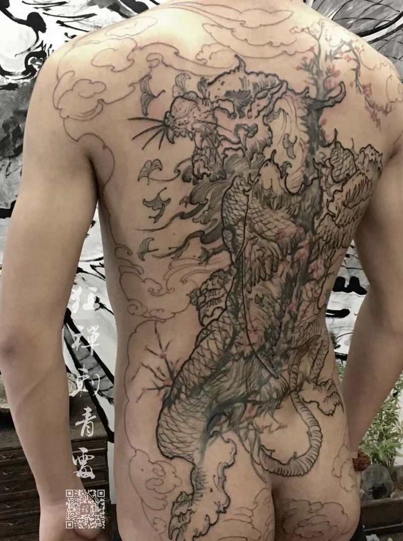 当前位置: 首页 >四川省宜宾市纹身店-狂禪刺青處纹身图案>满背遮盖貔貅未完成纹身图片