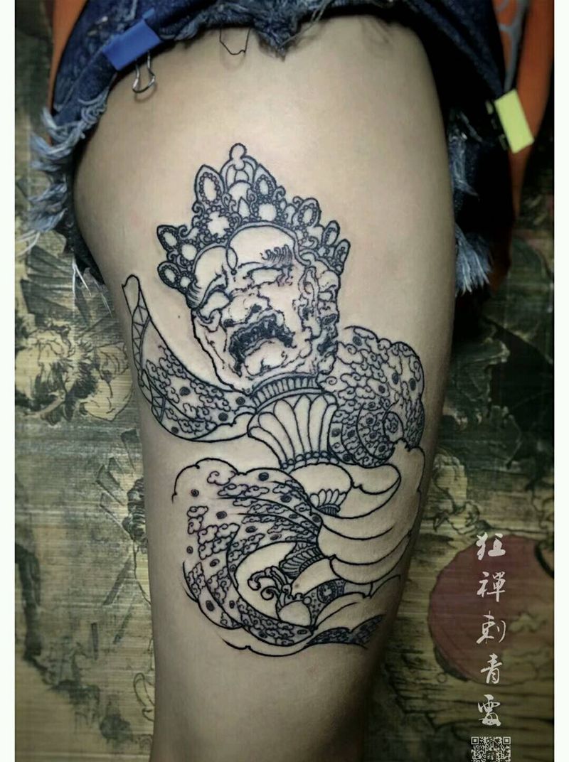 降魔杵未完纹身图片_腿部手臂新传统纹身图案