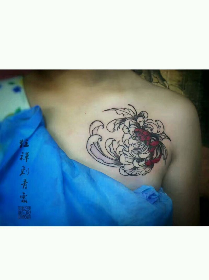 胸花未完纹身图片_肩部胸部新传统纹身图案