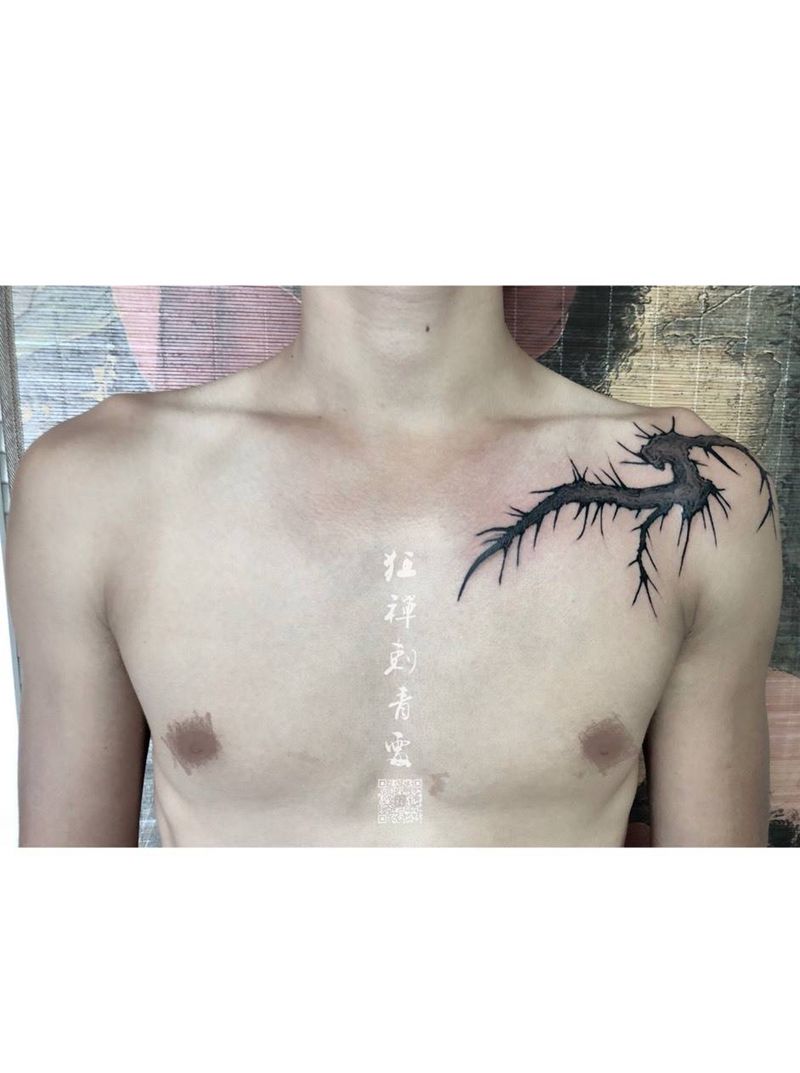 当前位置: 首页 >四川省宜宾市纹身店-狂禪刺青處纹身图案>荆棘纹身图片_肩部胸部新传统点刺纹身图案