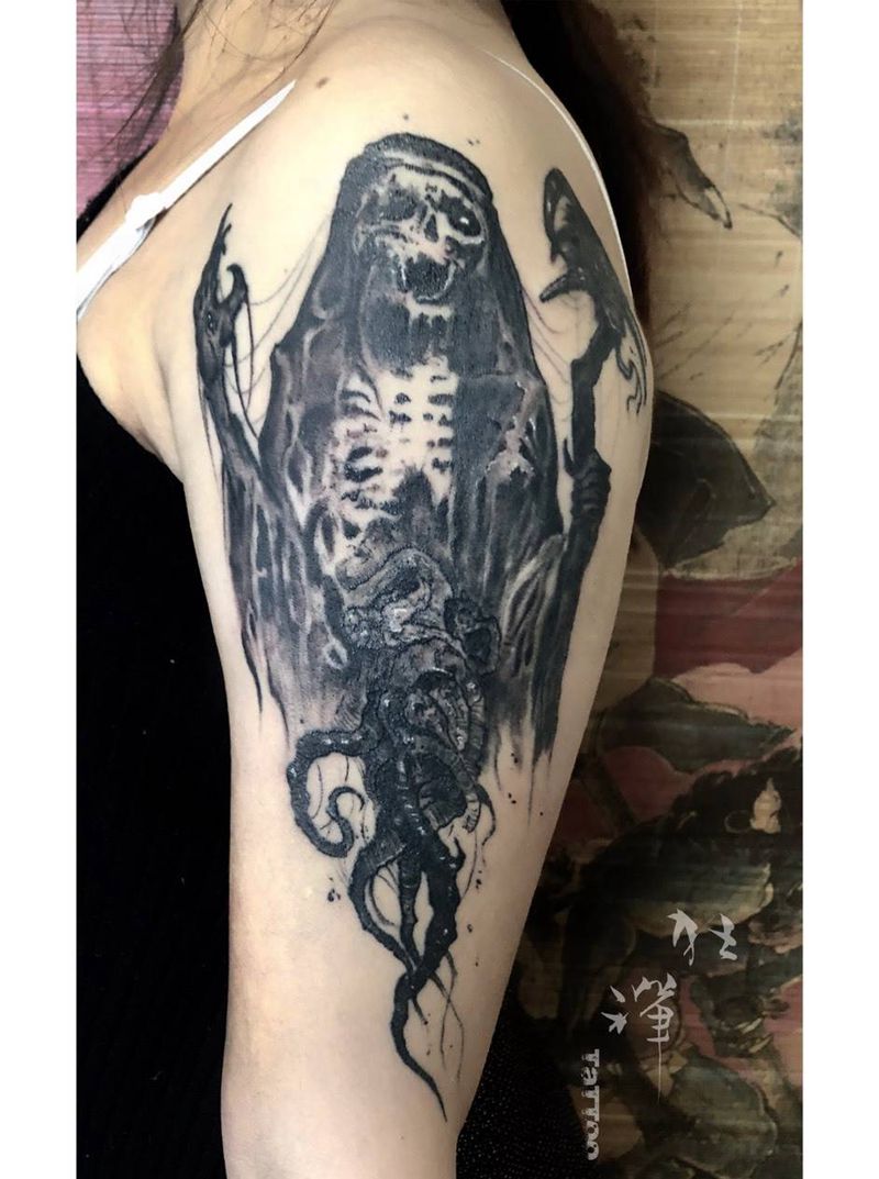 当前位置: 首页 >四川省宜宾市纹身店-狂禪刺青處纹身图案>死神纹身图片_手部手臂欧美写实暗黑风格纹身图案