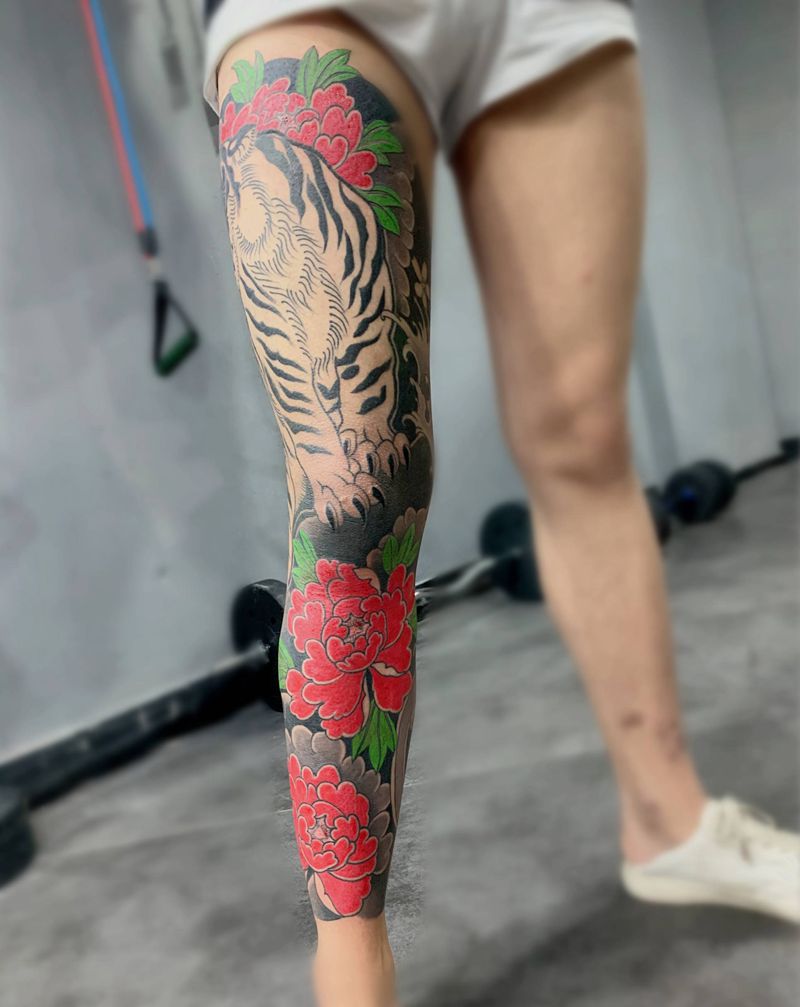 当前位置: 首页 >四川省达州市纹身店-纹轩刺青工作室纹身图案>大老虎纹身图片_腿部纹身图案