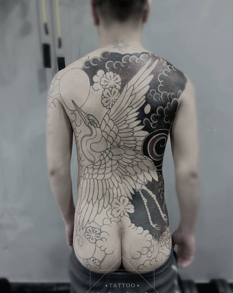 黑灰满背纹身图案