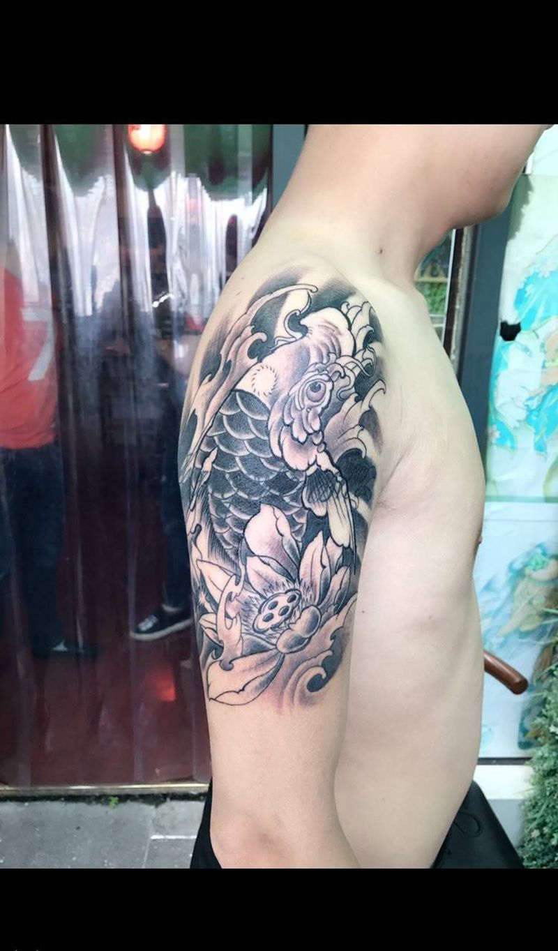 当前位置: 首页 >四川省达州市纹身店-纹轩刺青工作室纹身图案>鲤鱼遮盖旧纹身纹身图片