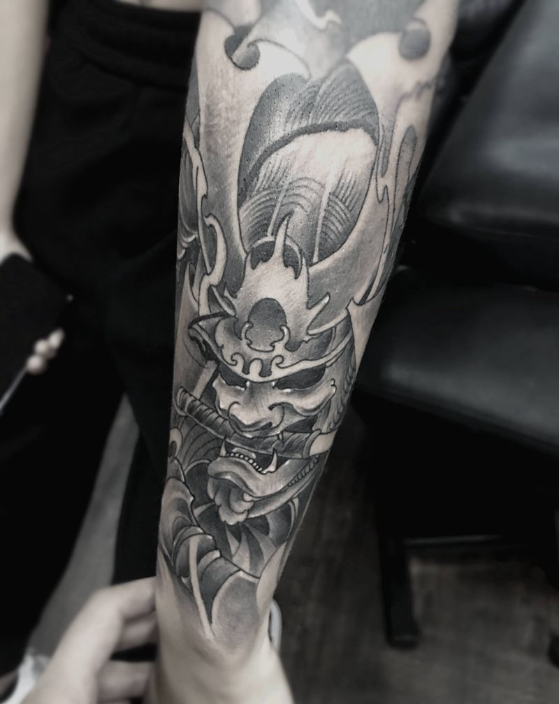 当前位置: 首页 >四川省达州市纹身店-纹轩刺青工作室纹身图案>武士纹身图片_手臂纹身图案