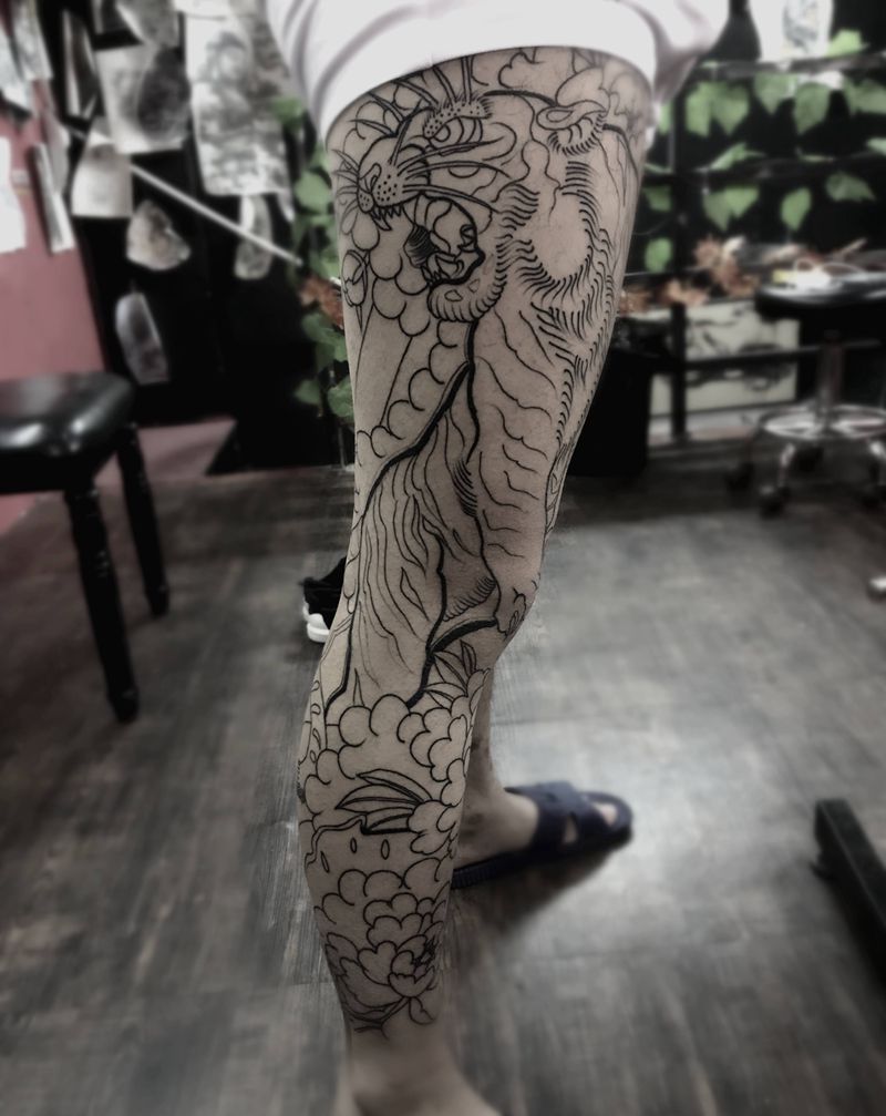 当前位置: 首页 >四川省达州市纹身店-纹轩刺青工作室纹身图案>老虎花腿纹身图片_腿部老传统纹身图案