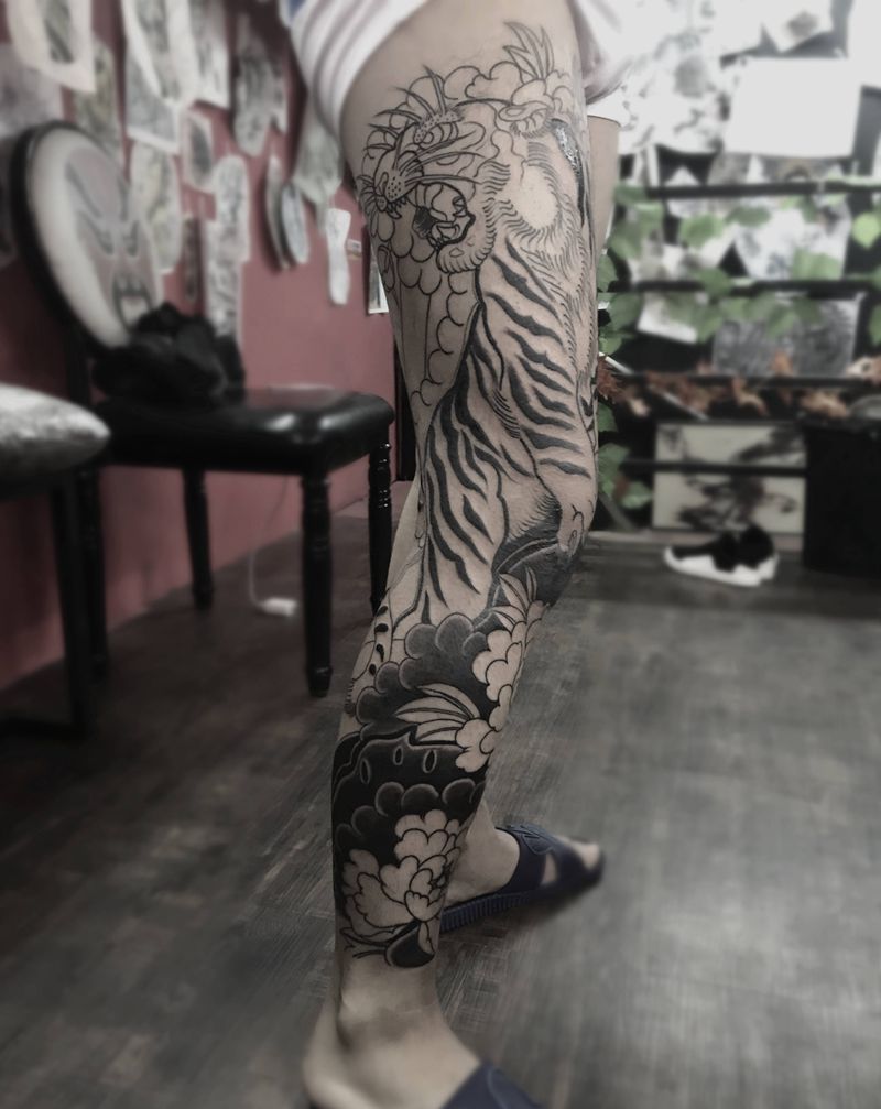 当前位置: 首页 >四川省达州市纹身店-纹轩刺青工作室纹身图案>老虎花腿纹身图片_腿部老传统纹身图案
