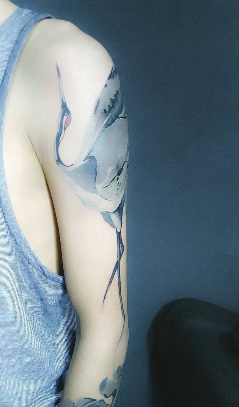 鹤者傲也纹身图片_水墨纹身图案