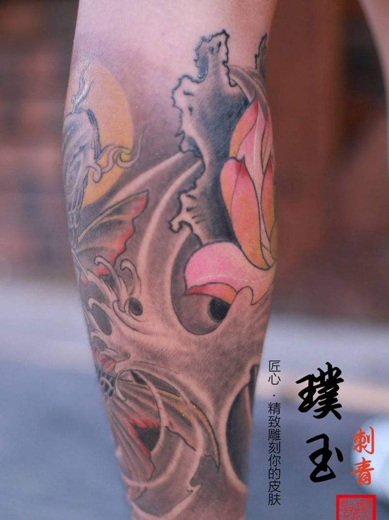 当前位置: 首页 >四川省达州市纹身店-璞玉刺青纹身图案>包小腿完成,线条非本人作品。纹身图片