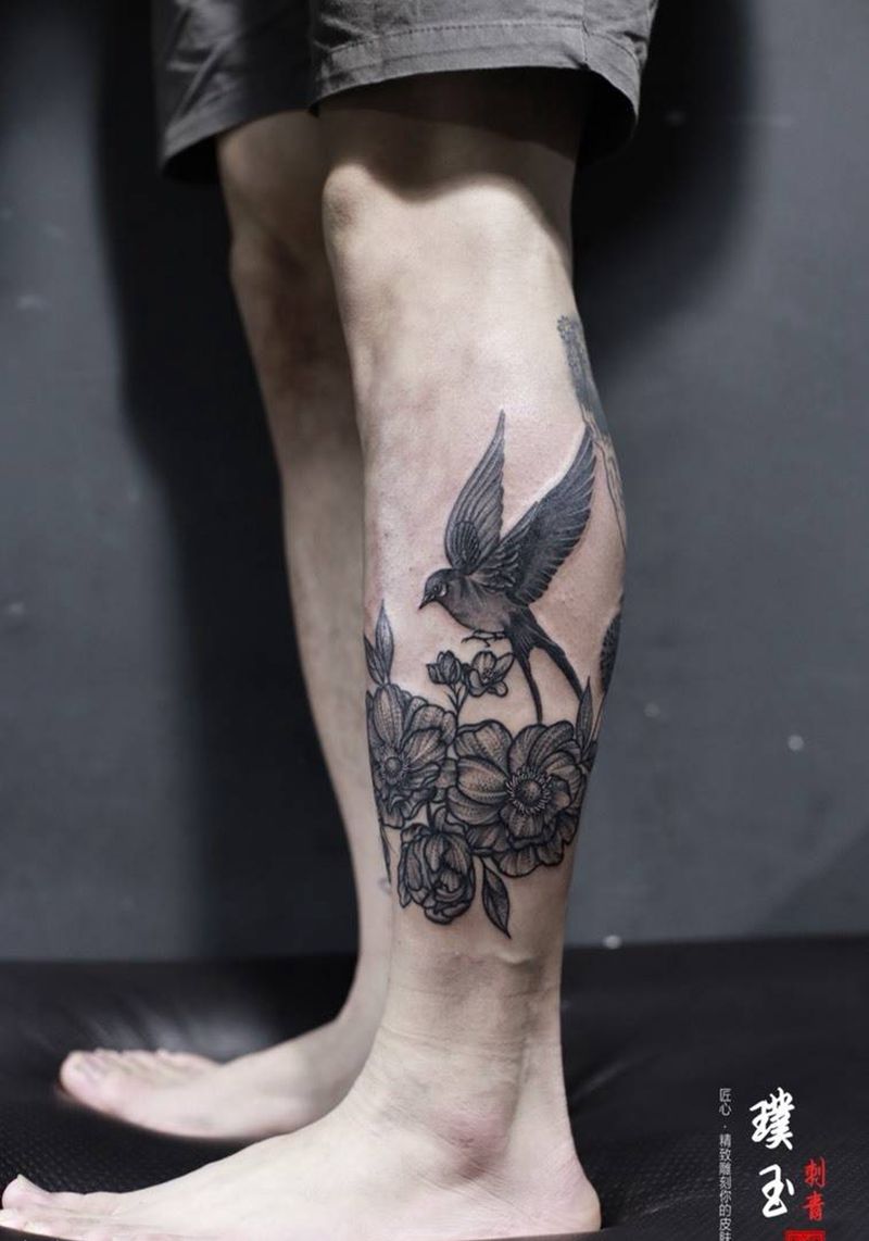 • T网红王老大花腿龙纹身图片_腿部新传统纹身图案
