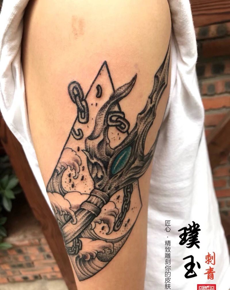 当前位置: 首页 >四川省达州市纹身店-璞玉刺青纹身图案>波塞冬三叉戟纹身图片