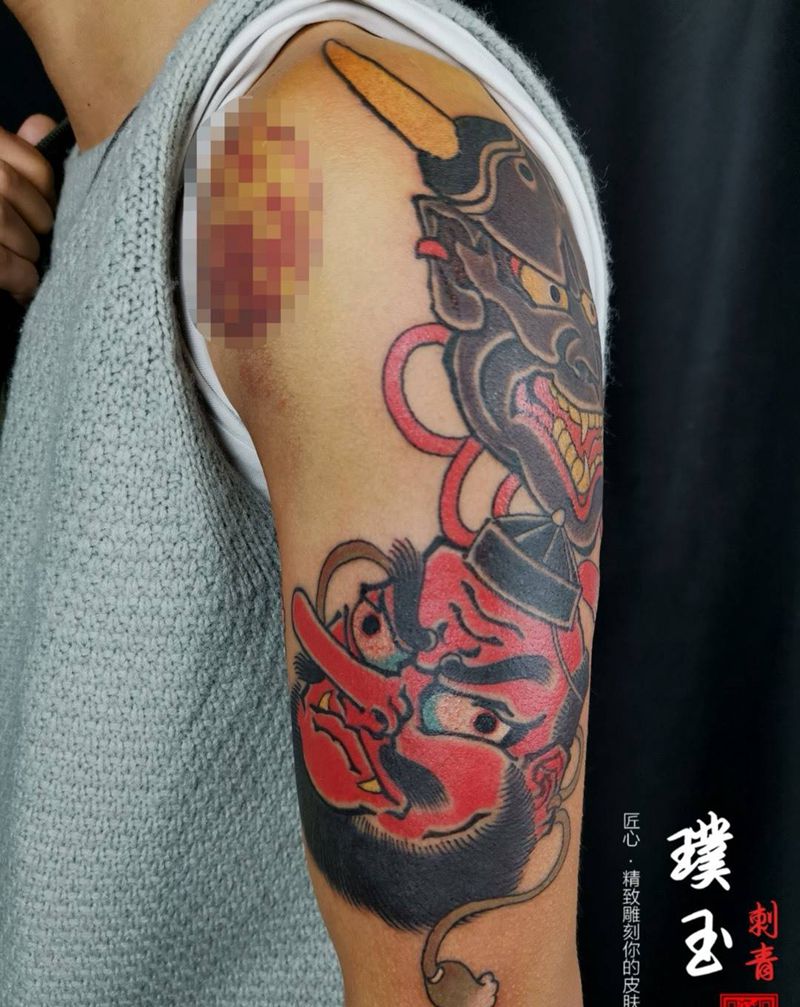 当前位置: 首页 >四川省达州市纹身店-璞玉刺青纹身图案>日式 般若与与天狗纹身图片
