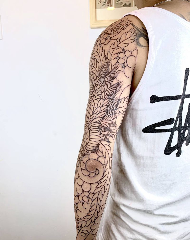 日式花臂《鸾凤》未完纹身图片_老传统风樱花纹身图案