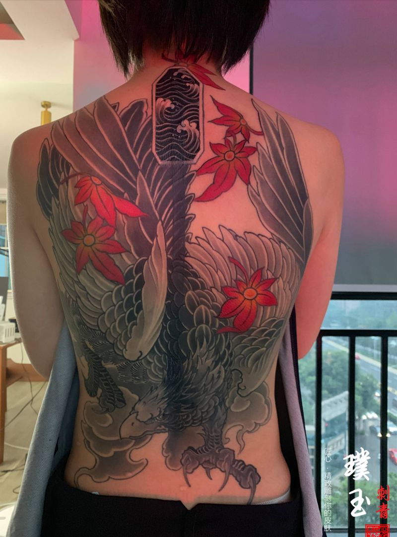 黑灰满背纹身图案