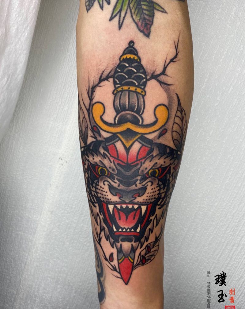当前位置: 首页 >四川省达州市纹身店-璞玉刺青纹身图案>oldschool虎纹身图片_手臂Old School老虎纹身图案