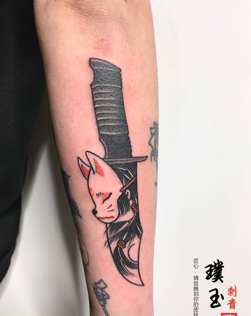 当前位置: 首页 >四川省达州市纹身店-璞玉刺青纹身图案>早期圆三作品纹身图片_手臂Old School匕首纹身图案