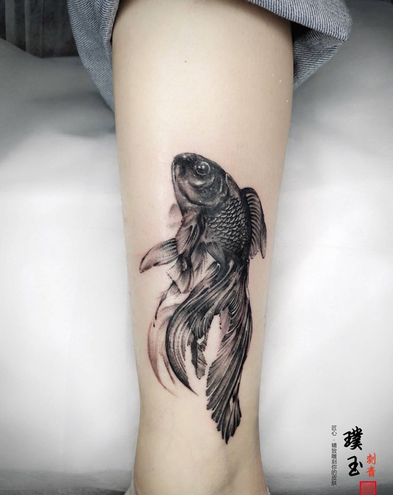 当前位置: 首页 >四川省达州市纹身店-璞玉刺青纹身图案>金鱼纹身图片_腿部欧美写实金鱼纹身图案