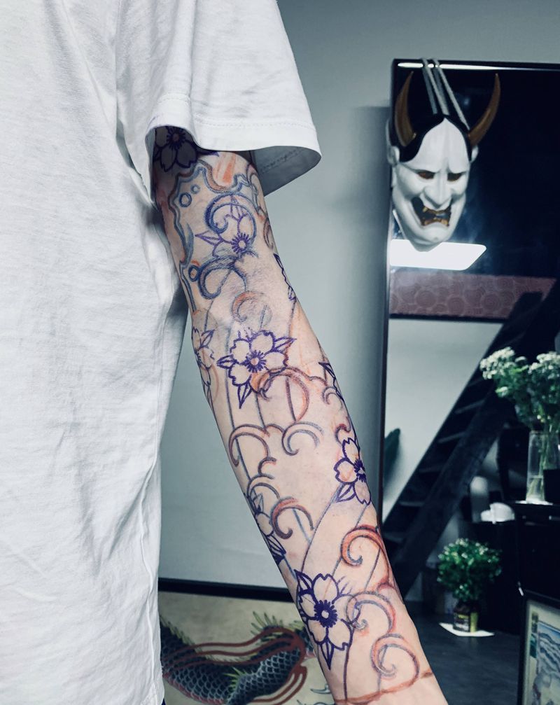 当前位置: 首页 >四川省达州市纹身店-璞玉刺青纹身图案>水浪花臂第一阶段纹身图片_手臂老传统水浪樱花纹身图案