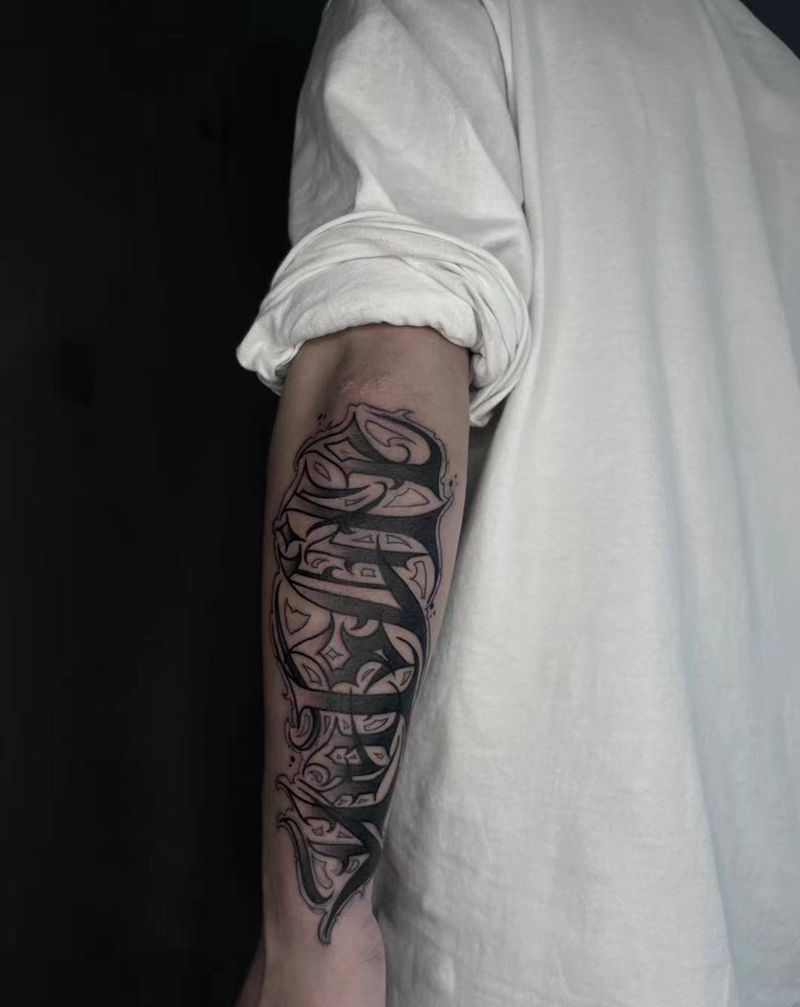 当前位置: 首页 >四川省巴中市纹身店-山兮纹身纹身图案>花体纹身图片_手臂花体字纹身图案