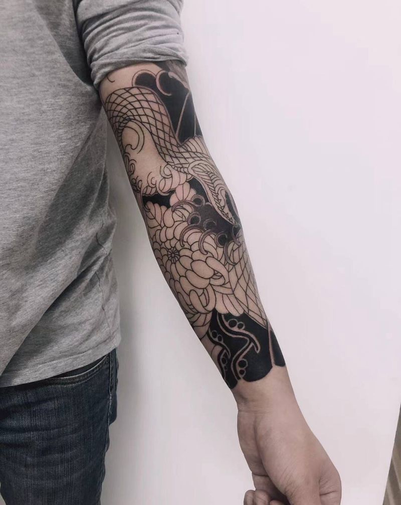 花臂蛇纹身图片_手臂手部老传统纹身图案