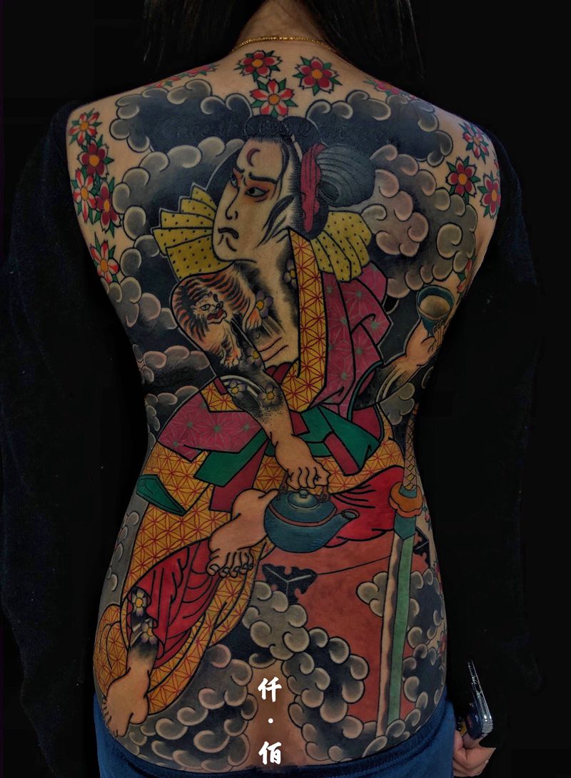 黑灰满背纹身图案