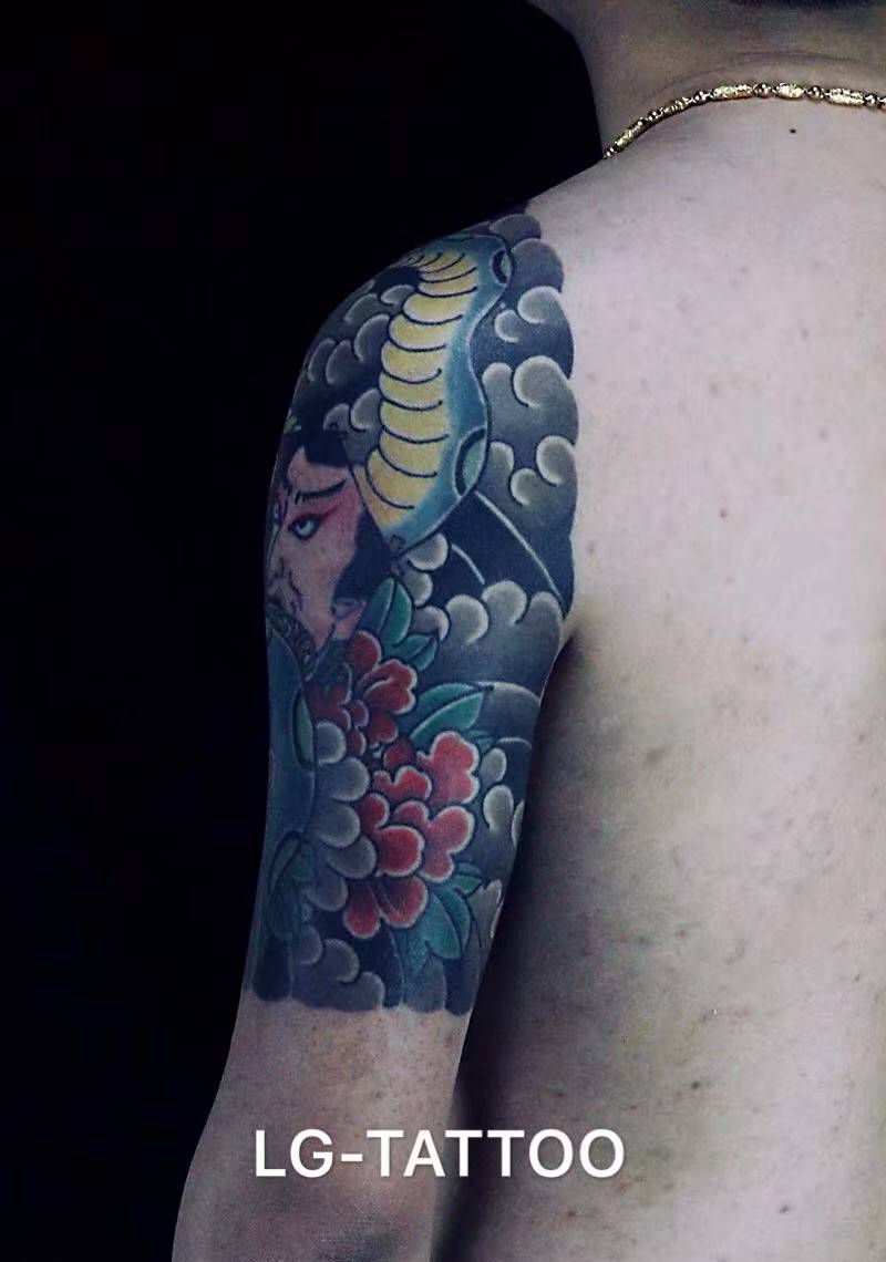 • 纹身吧推荐的披肩图腾半胛纹身图案作品展示