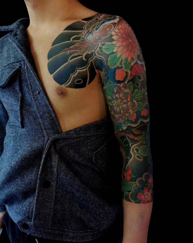 • T网红王老大花腿龙纹身图片_腿部新传统纹身图案