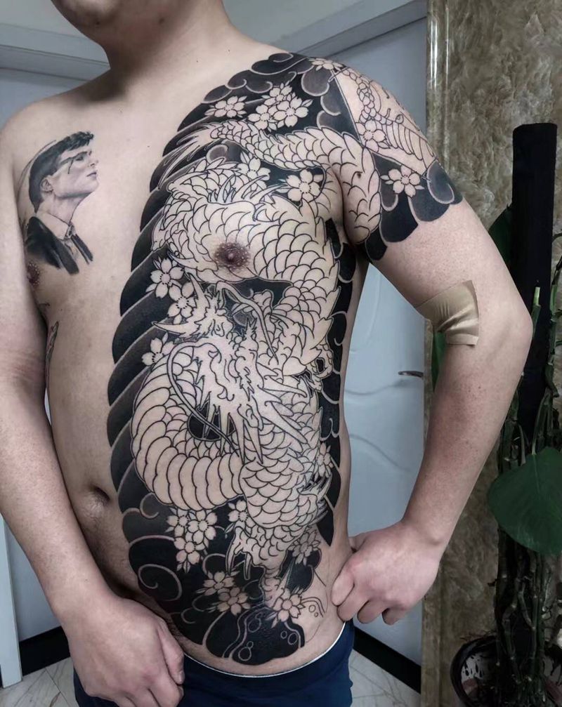 开衫龙纹身图片_腹部胸部老传统纹身图案
