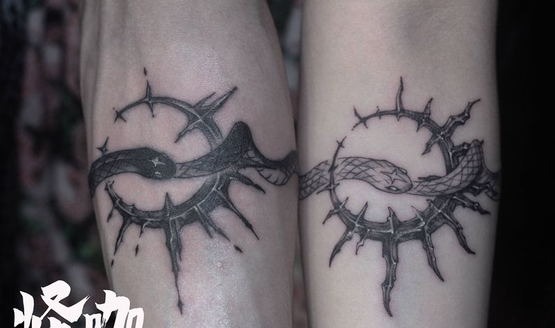 当前位置: 首页 >贵州省贵阳市纹身店-怪咖纹身刺青纹身图案>情侣纹身纹身图片_手臂欧美写实点刺纹身图案