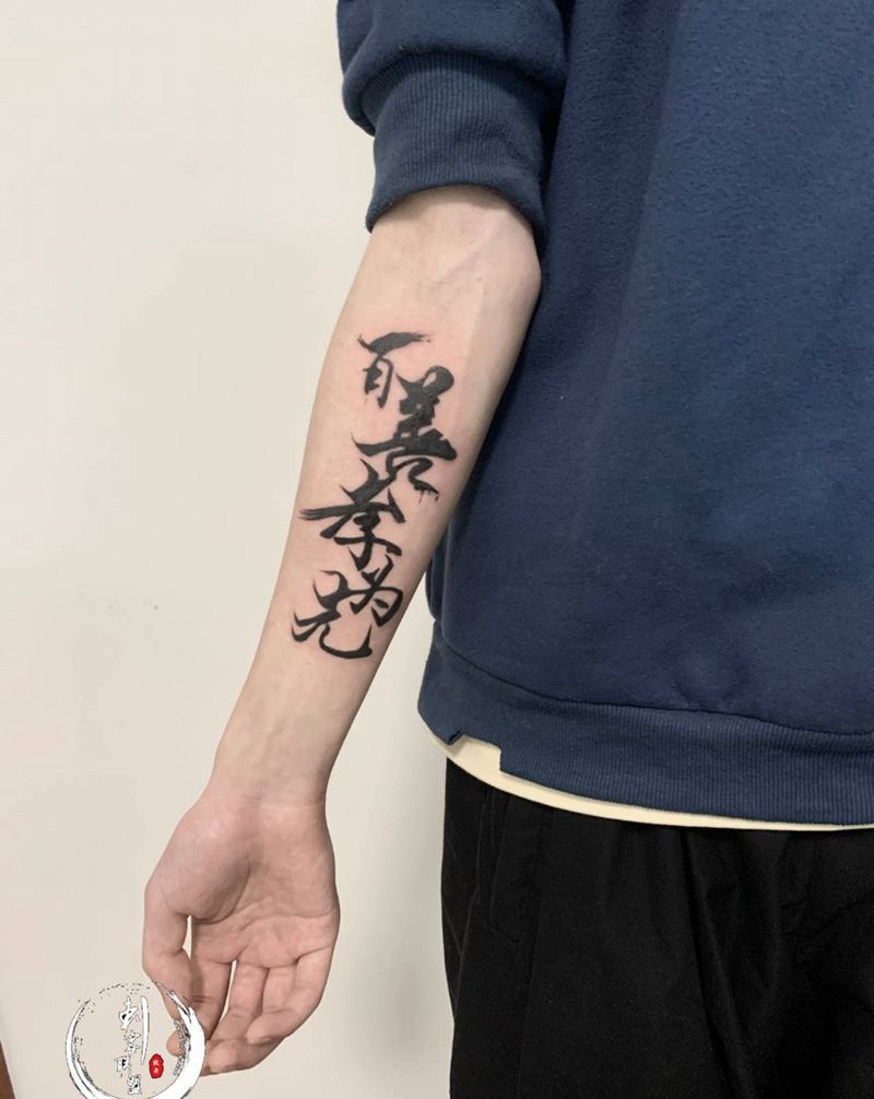 当前位置: 首页 >贵州省贵阳市纹身店-刺客联盟纹身刺青工作室纹身图案>书法字体纹身图片_手臂纹身图案