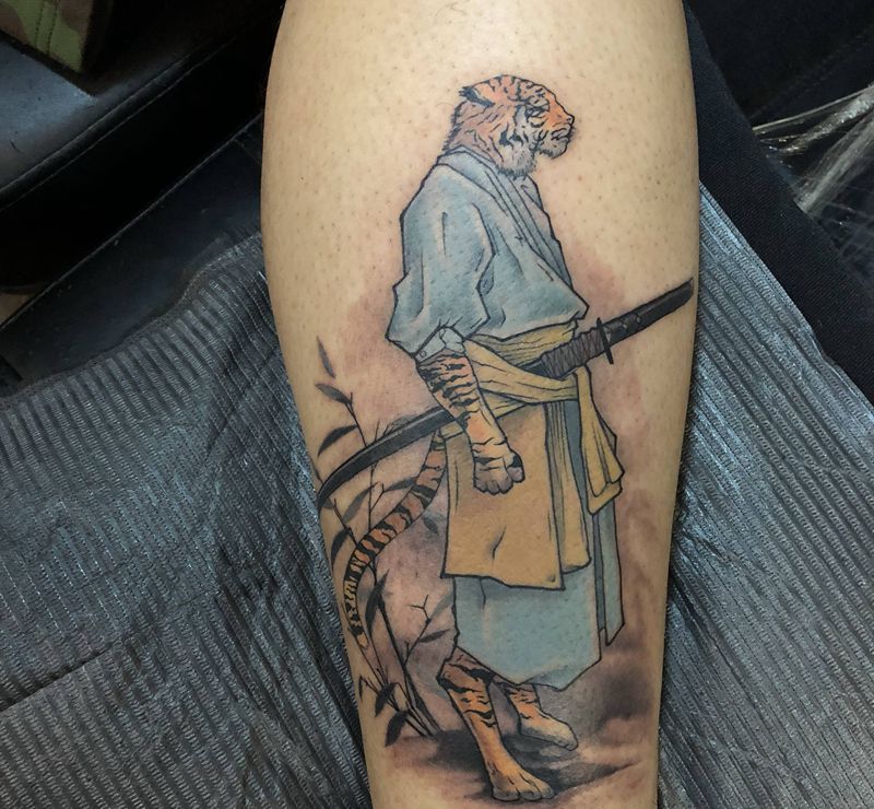 • T包小腿吹火男+阿多福纹身图片_腿部老传统新传统吹火男阿