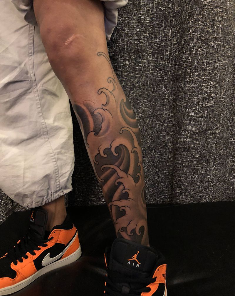 • T网红王老大花腿龙纹身图片_腿部新传统纹身图案