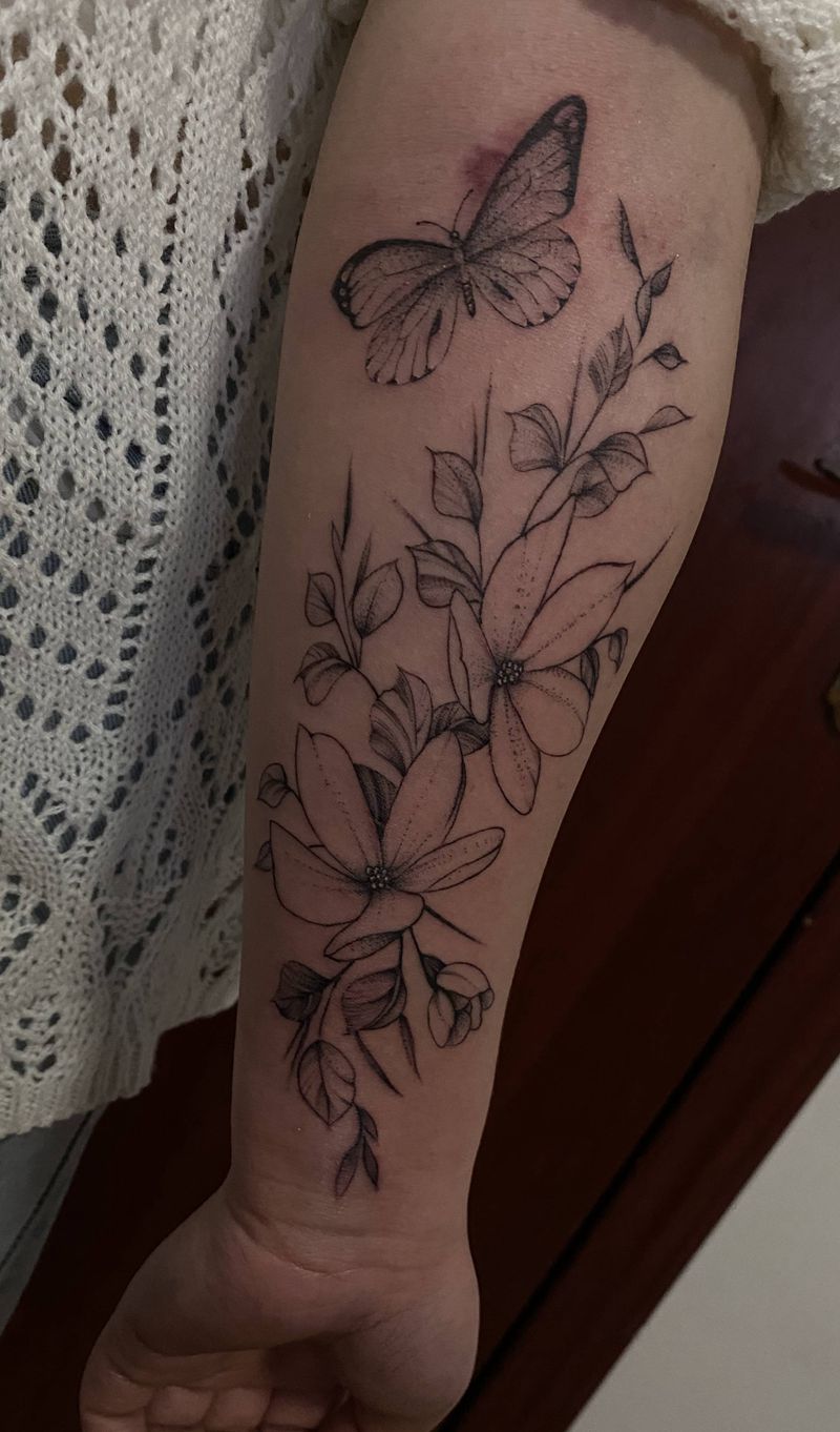素花纹身图片_手臂点刺纹身图案