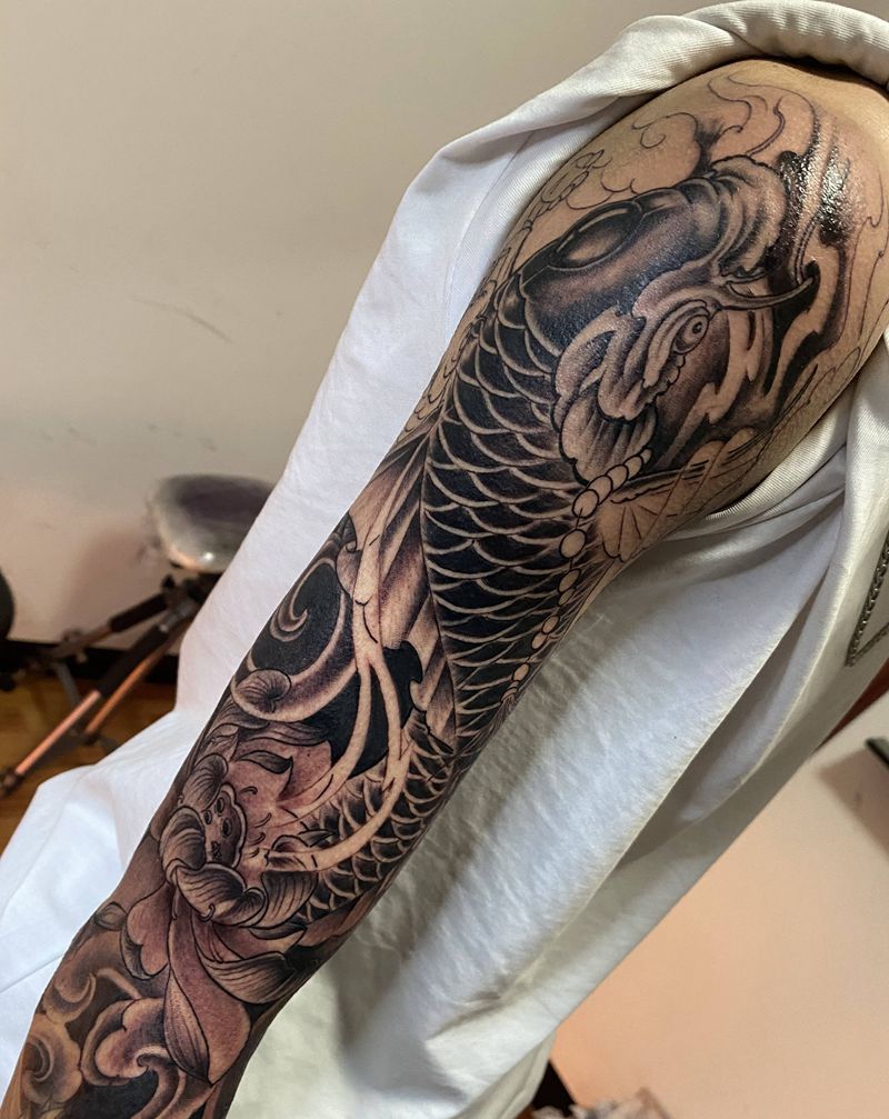 当前位置: 首页 >贵州省贵阳市纹身店-林刺青纹身图案>鲤鱼纹身图片_手臂新传统纹身图案