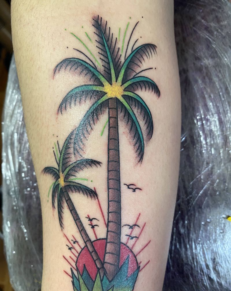 当前位置: 首页 >贵州省贵阳市纹身店-林刺青纹身图案>椰子树纹身图片_手臂Old School纹身图案