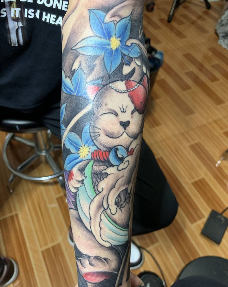 当前位置: 首页 >贵州省贵阳市纹身店-林刺青纹身图案>招财猫纹身图片_手臂新传统纹身图案