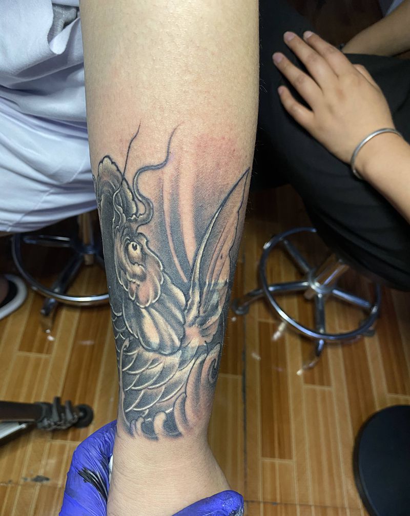 • T网红王老大花腿龙纹身图片_腿部新传统纹身图案