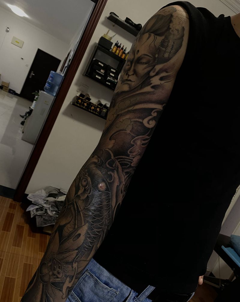 当前位置: 首页 >贵州省贵阳市纹身店-林刺青纹身图案>花臂纹身图片_手臂新传统纹身图案
