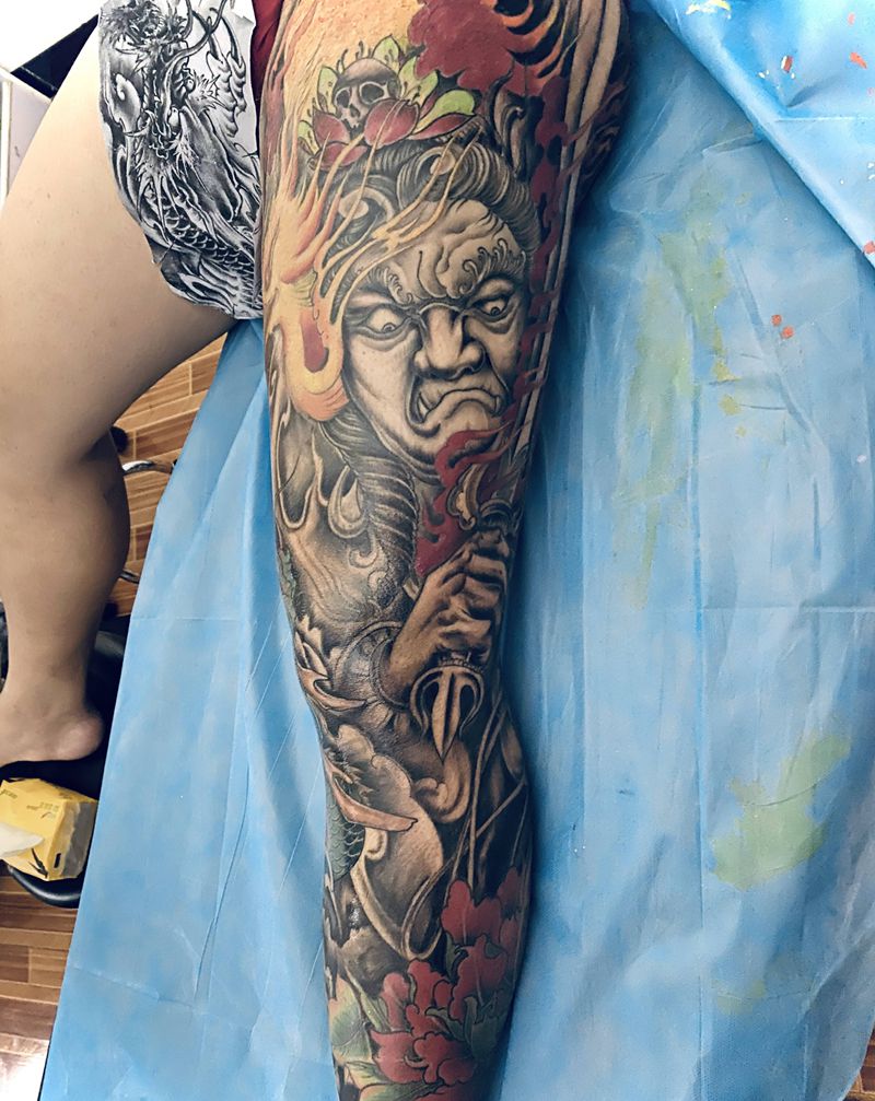 不动明王纹身图片_腿部新传统纹身图案