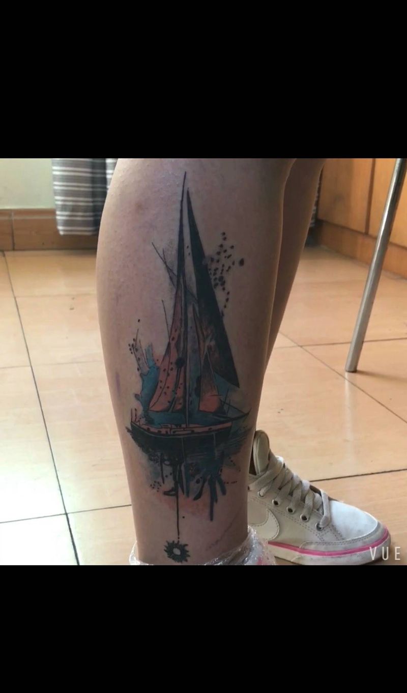 • T网红王老大花腿龙纹身图片_腿部新传统纹身图案