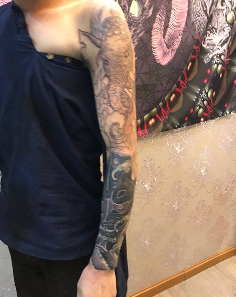 当前位置: 首页 >四川省凉山彝族自治州纹身店-刺客刺青纹身图案>遮盖 花臂拼接纹身图片