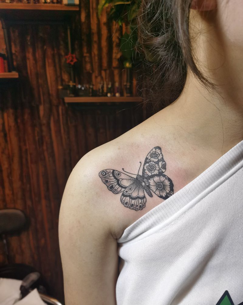 当前位置: 首页 >贵州省贵阳市纹身店-贵阳三目刺青纹身店纹身图案>蝴蝶纹身图片_肩部纹身图案