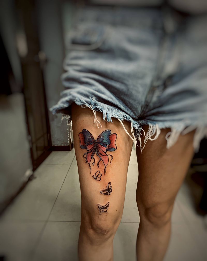 • T网红王老大花腿龙纹身图片_腿部新传统纹身图案