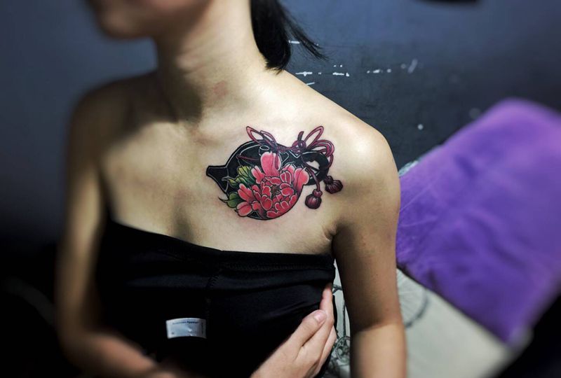 • 女性大花胸纹身_43张霸气漂亮的女性大花胸纹身图案作品